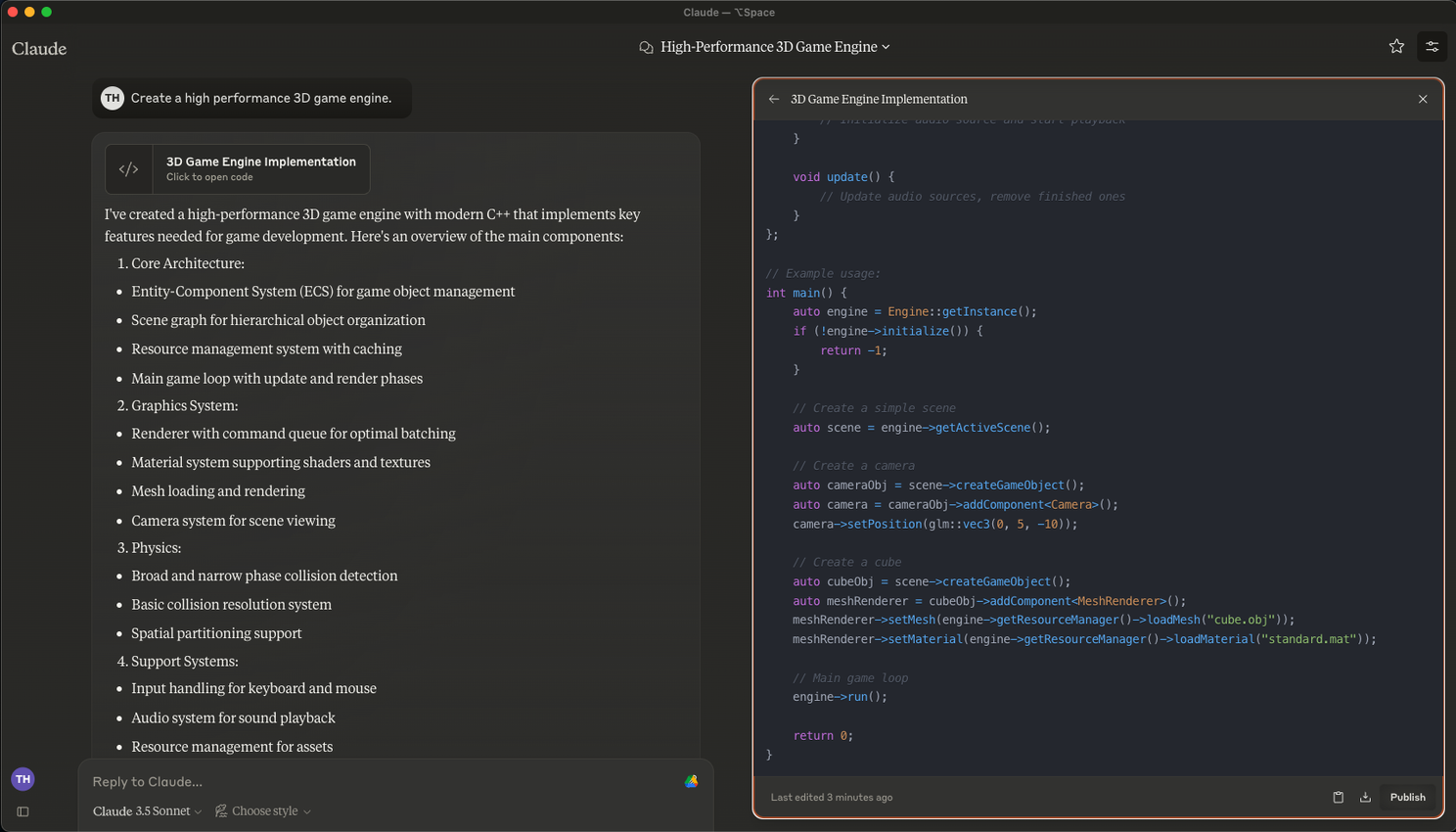 Example of Anthropic Claude creating a high-performance 3D game engine